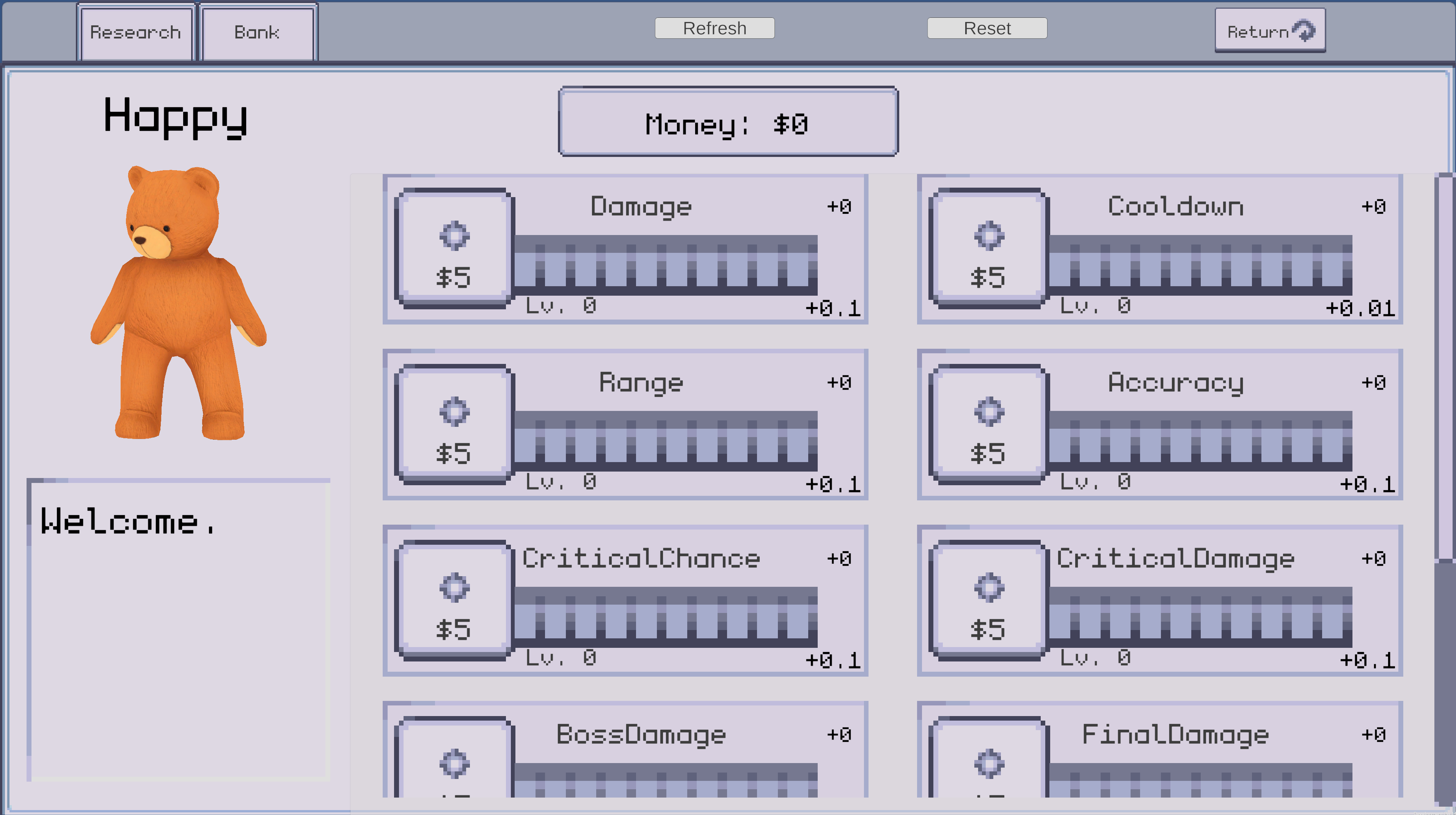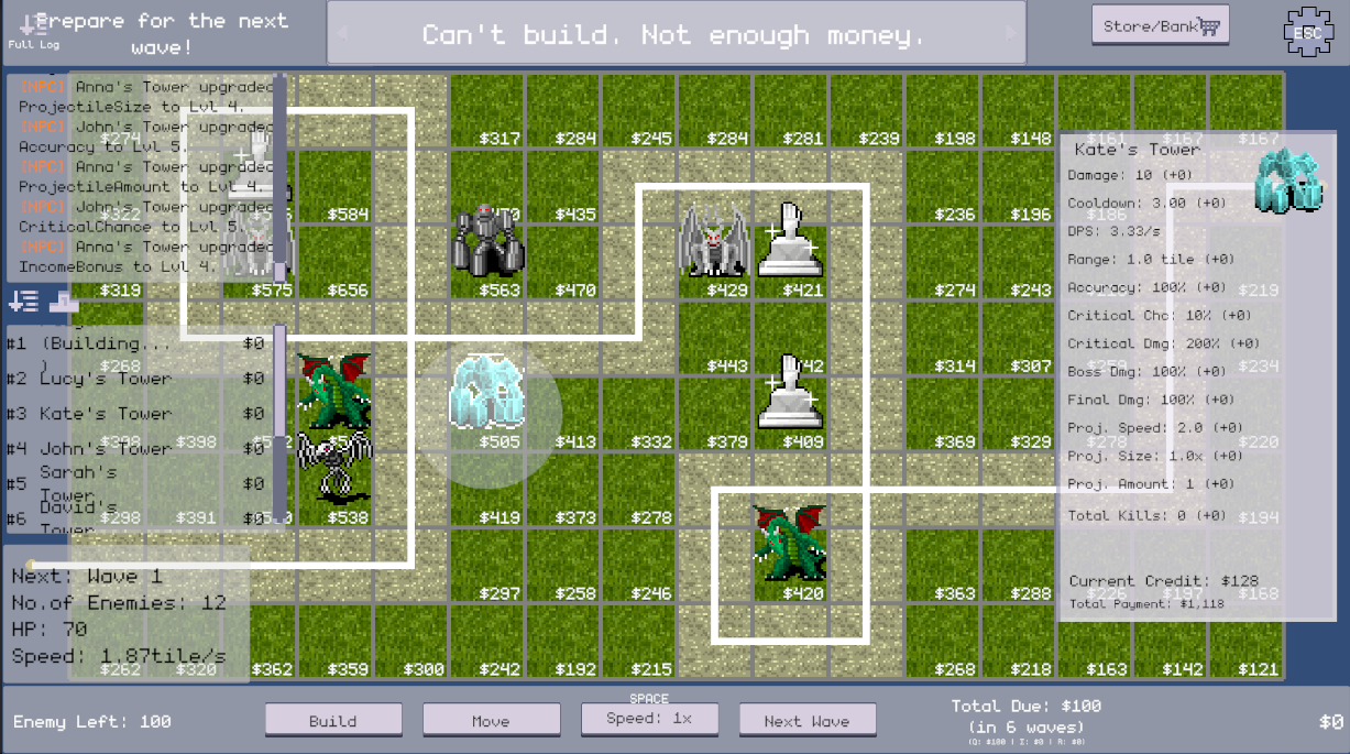 시작시 $5000~ 를 빌려서 타워를 짓고 업그레이드를 구매하세요