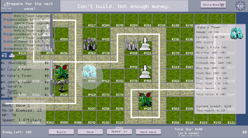 - Quota: Every 7 waves, management evaluates performance based on total revenue earned. The bottom 5 towers are immediately terminated (destroyed).